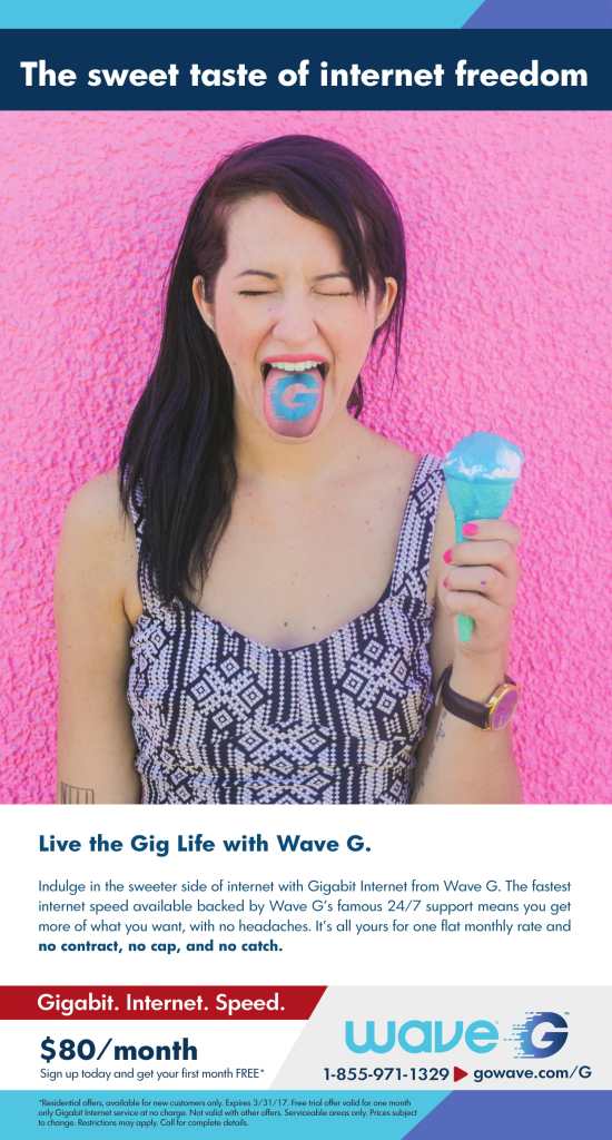 “The Gig Life” was a concept I developed for Wave to hype their symmetrical gigabit internet speed offered through Wave G — the “cool” brand.